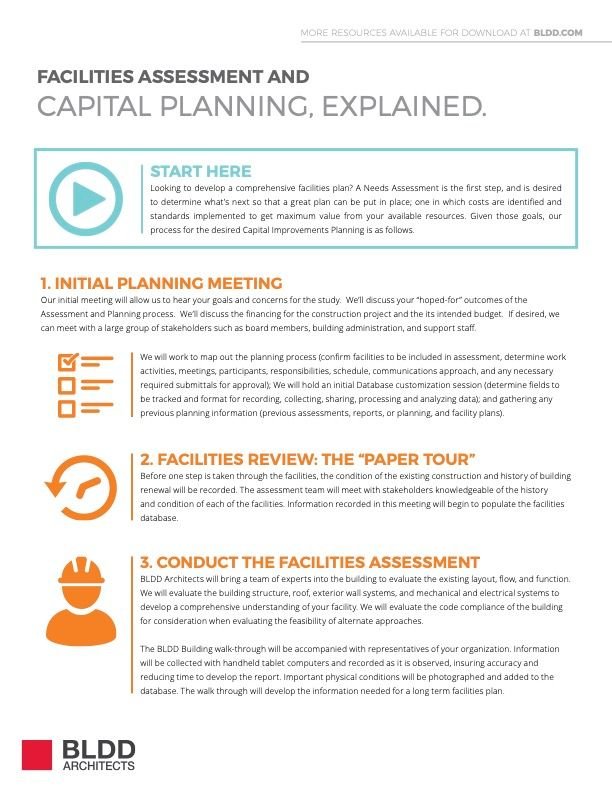 Maintaining and improving educational facilities requires vision, assessment, and decision-making. This process anticipates and responds to changes in enrollment, learning preferences, and maintenance requirements.