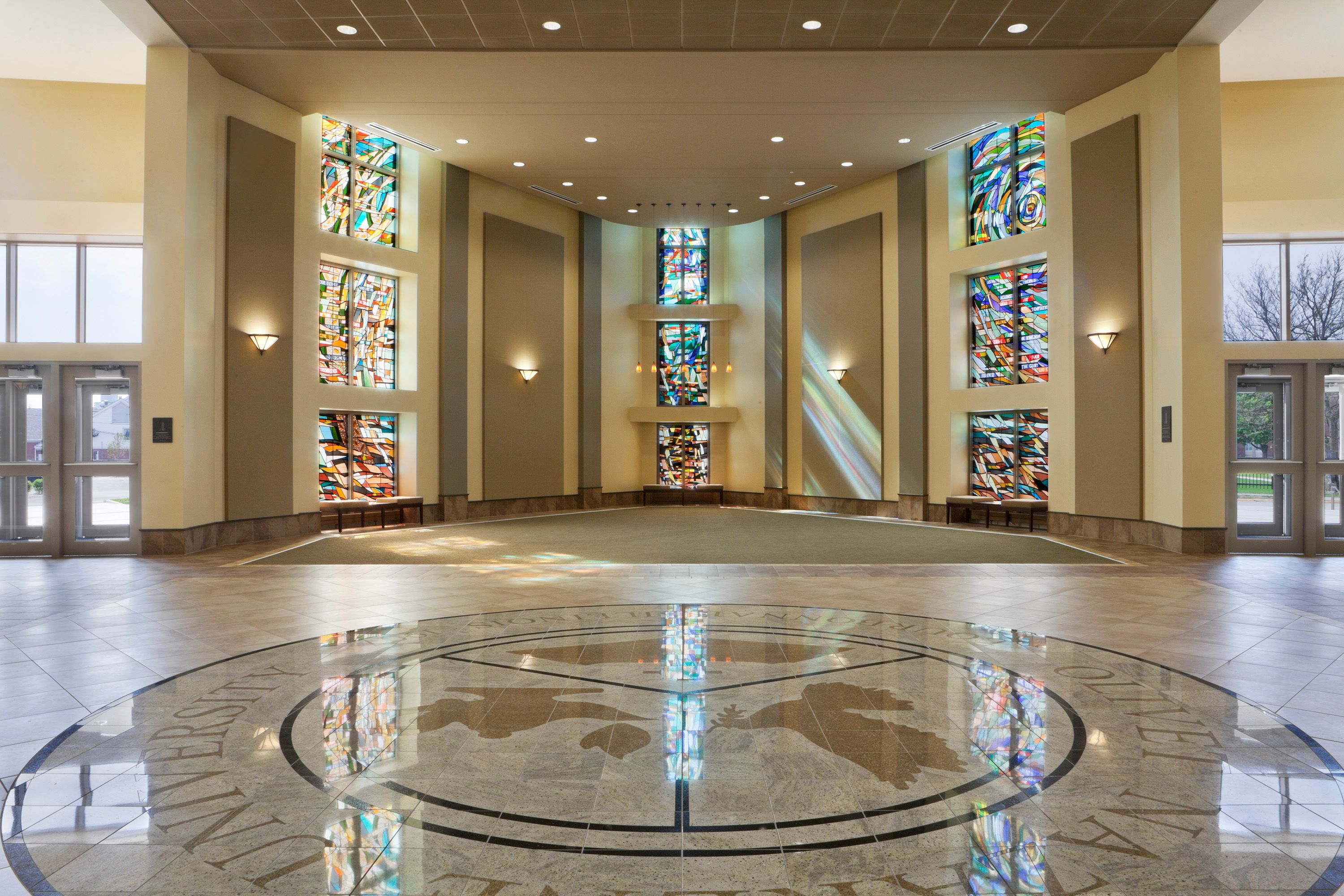 The design of the exterior and interior is a reinterpretation of the elements of the classical church form. Like many churches built in the past, the chapel at ONU is the centerpiece of the college community. Not just a place of worship, the new chapel is a multi-functional performing arts center that is a meeting place for the entire community. This design reinterpretation is necessary to meld the traditions of the church of the past with the functional needs of the modern church.