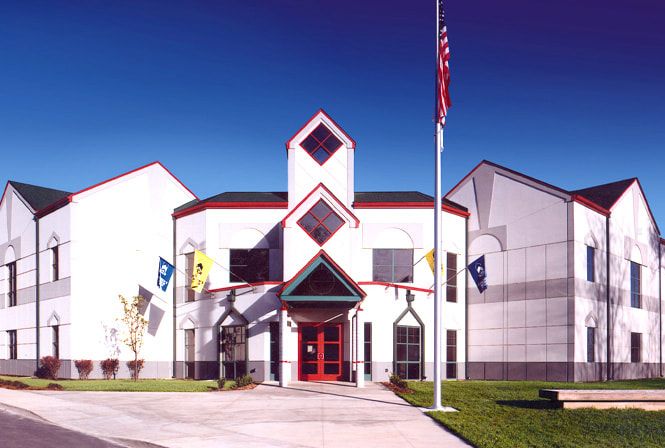 BLDD prepared a comprehensive master plan, including site selection, programming, and concept design for a new children's museum. The program demanded a flexible space for changing participatory exhibits. The site is located in a 200-acre city park. A small-scale train provides stops at the museum, zoo, and botanical garden. The exterior has many decorative elements to announce its importance and its playfulness. Color, use of space, natural light, and materials all enhance the environment for children to learn, interact, and play.