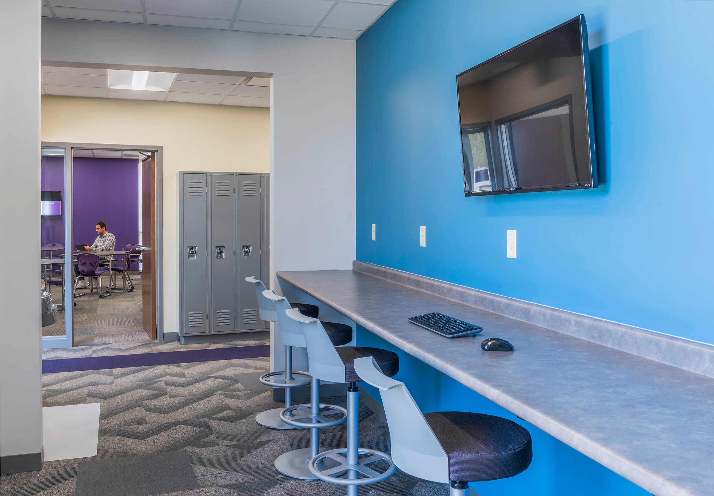 The new high school addition provides spaces that are flexible and have more than one function. Moveable walls, reconfigurable furniture, shared faculty offices, and multi-functional spaces create a 21st century learning environment in a smaller footprint.
