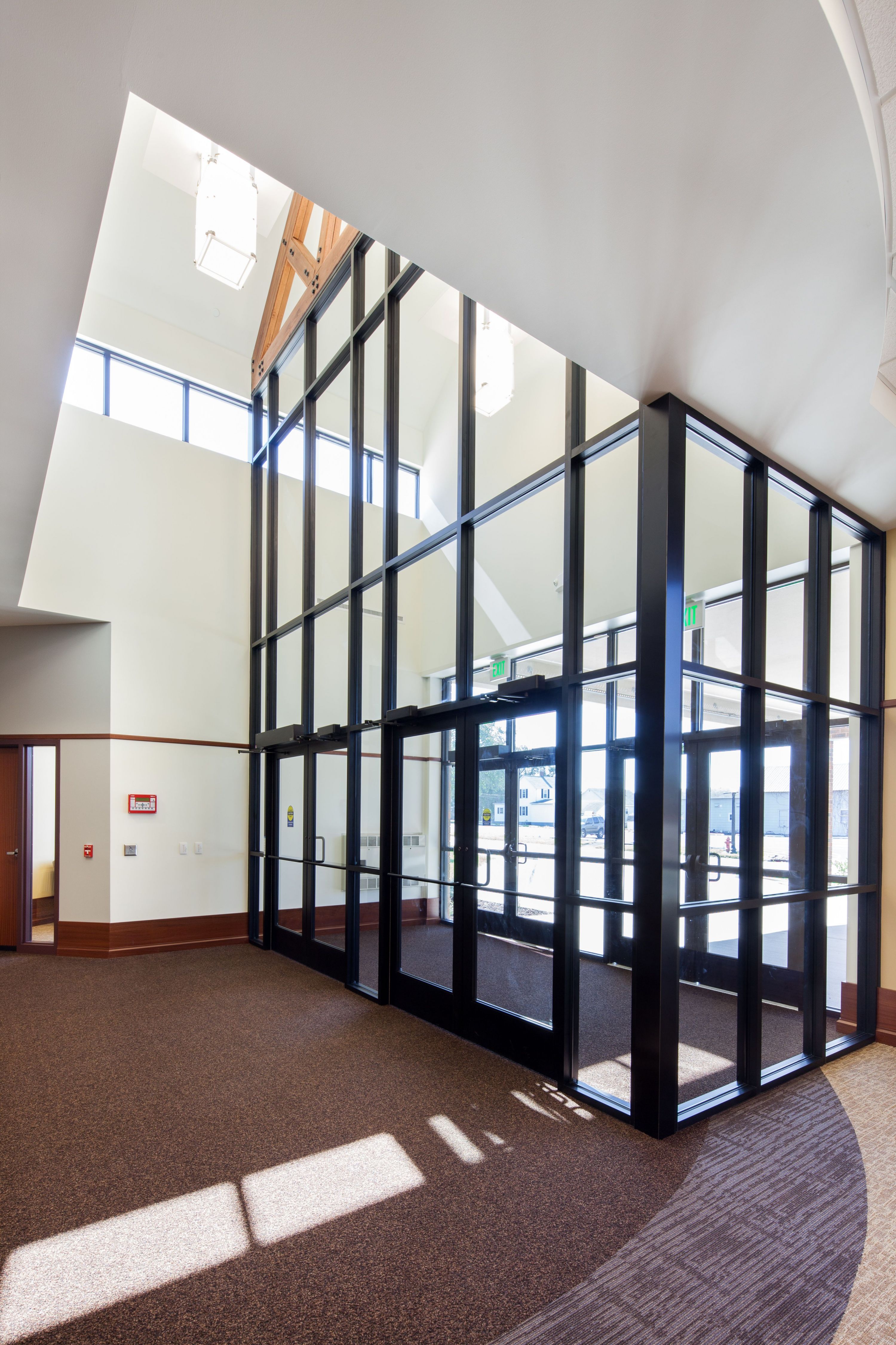 Built in 1925, the historic First United Methodist Church of Lincoln, IL, was renovated to restore their aging facilities and add a new accessible entryway and lobby. The new main lobby welcomes visitors with an open and inviting atmosphere that uses the exterior walls of the previous courtyard to blend the historic with the modern design.