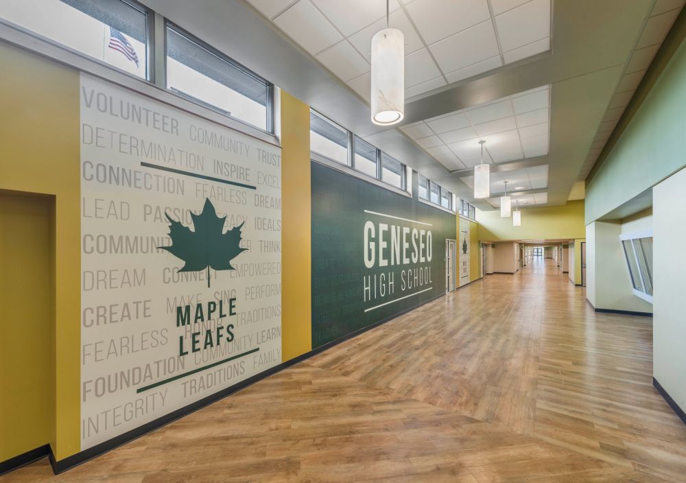 The spirit of teamwork and fundamental arts education have transformed a dated environment into a home for powerful performance in academics, athletics and fine arts. The Front Entry Lobby offers a space that feels welcoming and secure. The Maker’s Space provides a flexible learning space that encourages project-based learning in 2D and 3D arts. The Lobby and Info Commons encourage collaborative learning within a blend of traditional and technologically advanced spaces. The Concert Hall spotlights student learning through performance.
