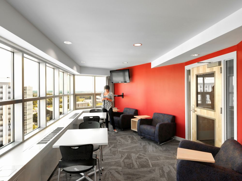 The unique shape of these mid-century marvels makes them signature buildings on the NIU campus, but the dated interiors scared off students. A complete remodel helped breathe new life into the 13-story building, while still honoring the character.