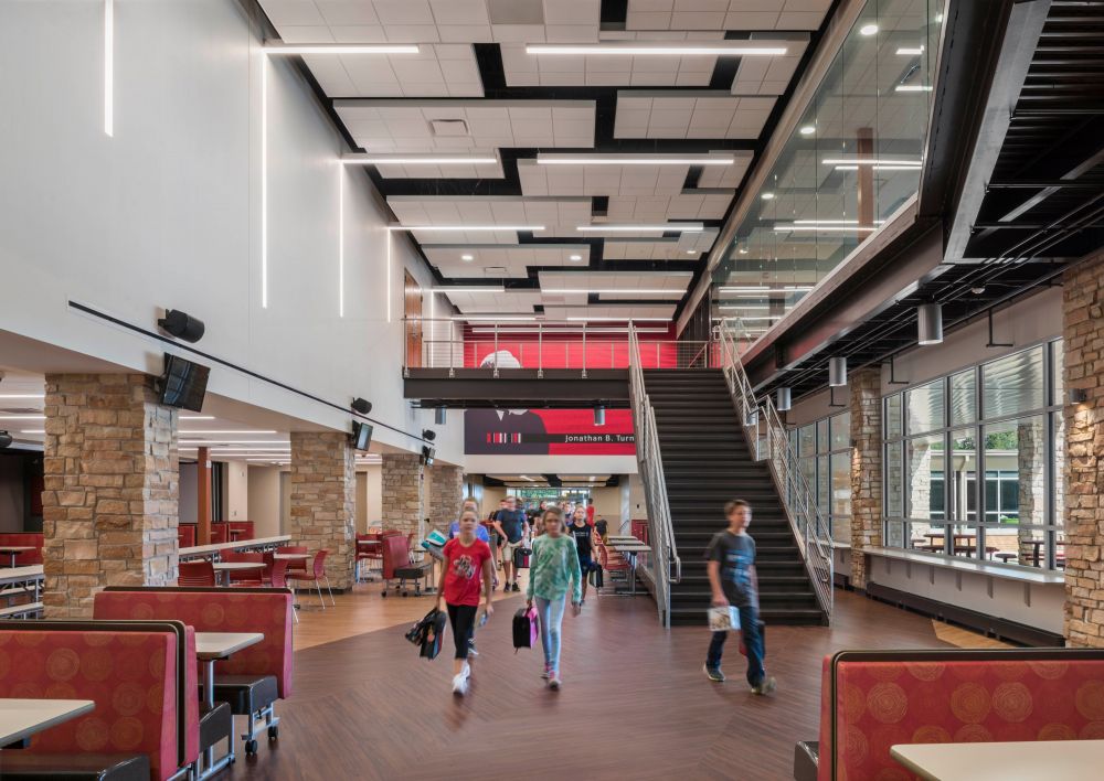 An addition and renovation includes a new gym, dining commons, administration offices, library and three flexible-learning classrooms. To improve safety and security, a tornado shelter was added, along with updated entry controls and advanced camera systems.