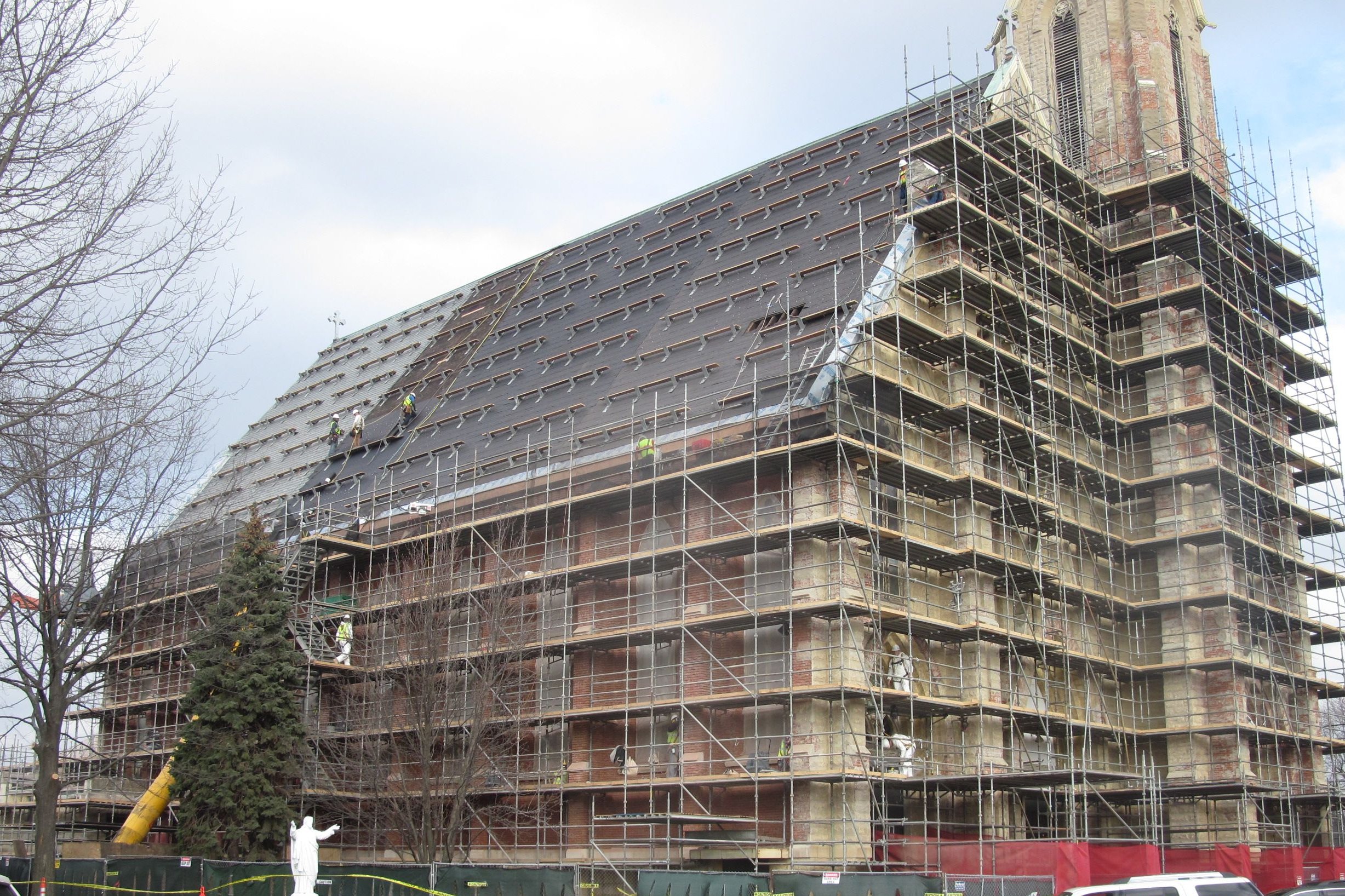 The design team started with this long term goal in mind, and worked with St. Columba to develop an overall master plan for church facilities. The plan looked at all current unresolved maintenance issues in a larger scope and incorporated a plan that would be followed for the ongoing care and upkeep of the newly restored facilities. The parish wanted a long-term (100-year) solution, so the design team developed a two-phase plan to address all of the church’s needs. Phase 1 was the exterior renovation and restoration; and in order to fund the projects, the Parish raised funds through a capital campaign.