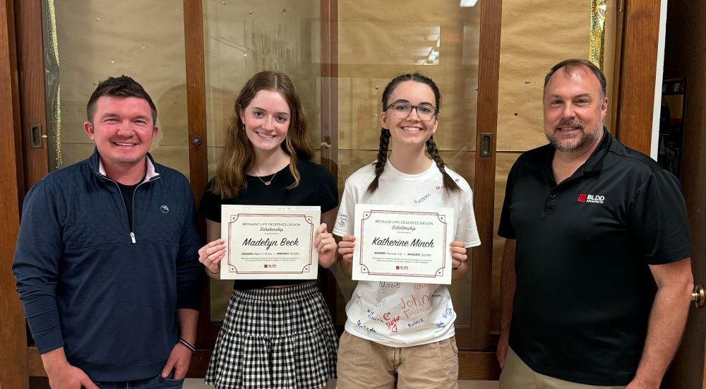 BLDD Architects, Inc., is pleased to announce the recipients of the annual Because Life Deserves Design Scholarship: Madelyn Beck, Katherine Minch and Declan Markel. The scholarship — named after BLDD’s mission “Because Life Deserves Design” — recognizes senior high school students for their creativity, artistic passion and potential to contribute to the world of architecture, interior or graphic design.